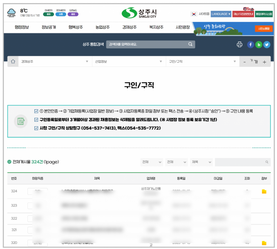 인터넷이 발달하면서 우리는 많은 사이트들을 통해 구인구직 정보를 얻을 수 있습니다. 아예 취업정보만 취급하는 대형 플랫폼도 있고, 지역 커뮤니티도 찾아볼 수도 있습니다. 또는 시청과 같은 공공기관에서 운영하는 구인구직 게시판을 통해서도 일자리 정보를 얻을 수 있습니다. 많은 분들이 시청홈페이지에서 일자리 정보를 제공하고 있다는 사실을 모르는 경우가 많아, 이번 포스팅에서는 상주시를 예시로 들어 설명해보도록 하겠습니다.