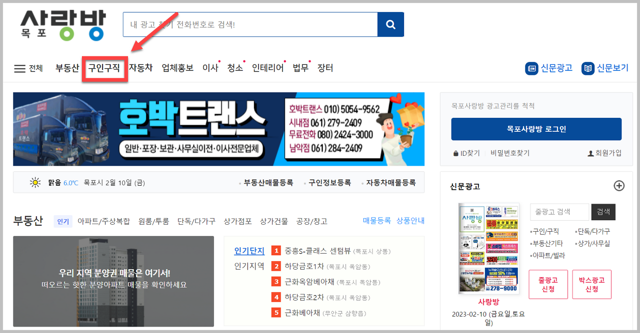 목포사랑방 신문 구인구직 바로가기