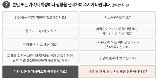 다음으로 본인 혹은 가족의 특성이나 상황을 선택합니다.