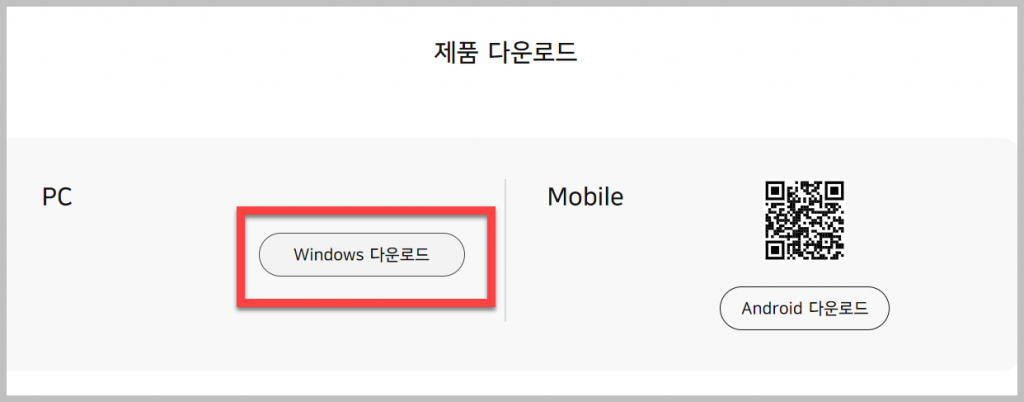 위 링크를 통해 다운로드 페이지로 이동하면, 홈페이지에 접속해 비슷한 화면을 볼 수 있습니다. '다운로드' 버튼을 클릭하면 PC와 스마트폰에 설치할 수 있는 링크로 이동합니다.